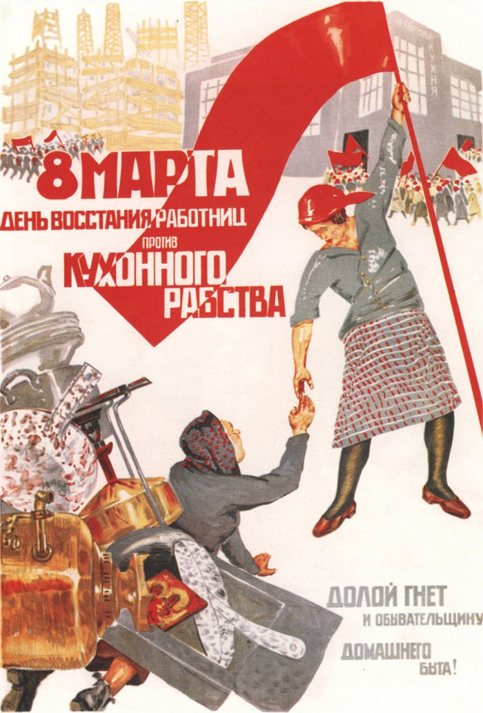 Советский плакатВ СССР, начиная с 1966 года, Международный женский день 8 марта превратился в красный день календаря 4, то есть стал нерабочим.