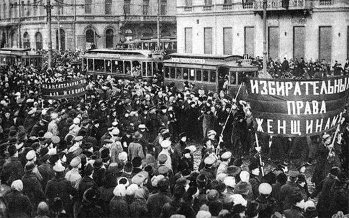 Но одной из самых важных вех этого праздника пришлось на 23 февраля 1917 года (последнее воскресенье февраля). В этот день в России прошло около 9 000 забастовок под лозунгом «за хлеб и мир», с требованием прекращения Первой мировой войны, которые стали предвестником революции. Через 4 дня, царский режим пал и установилось двоевластие Временного правительства и Петросовета.