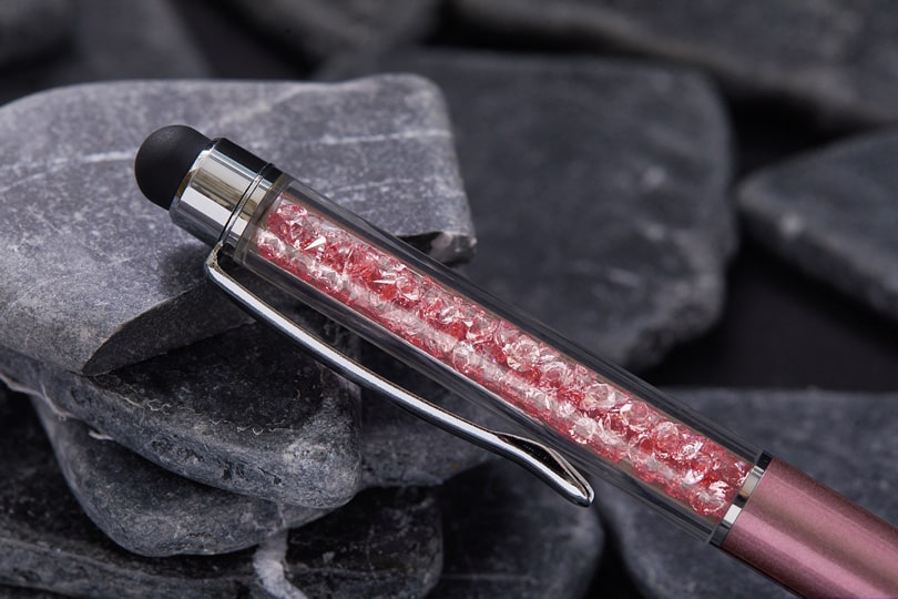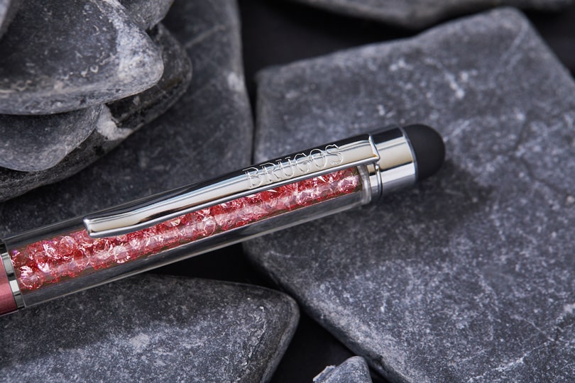 Необычайно элегантная подарочная ручка-стилус из металла покрытого розовым лаком. Корпус декорирован прозрачной закрепкой из ударопрочной смолы наполненной блестящими кристаллами Сваровски розового цвета.