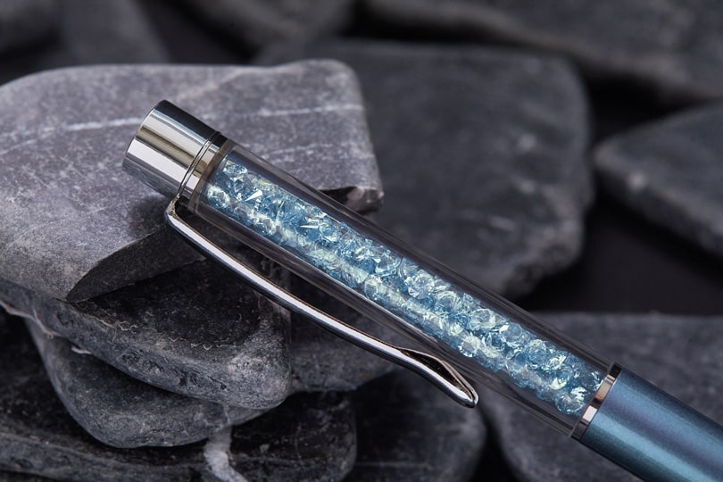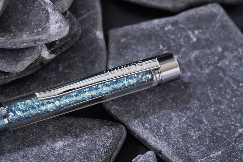 Очаровательный дизайн в новой металлической подарочной шариковой ручке с лаковым покрытием синего цвета. Корпус оснащен прозрачной закрепкой из ударопрочной смолы заполненной сияющими кристаллами Сваровски синего цвета.