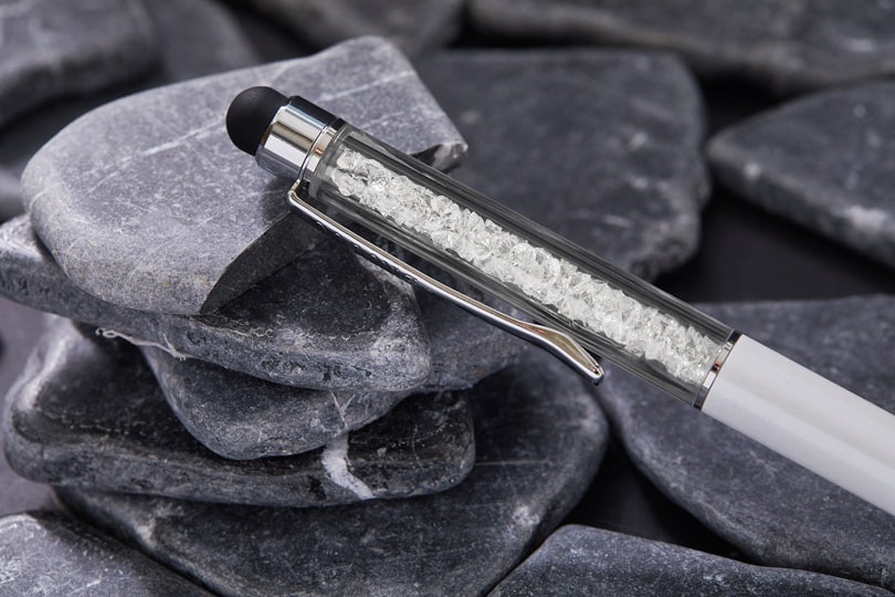 Потрясающая своим качеством металлическая ручка-стилус с лаковым покрытием белого цвета. Корпус оборудован прозрачной закрепкой из ударопрочной термопластической смолы наполненной искрящимися кристаллами Сваровски белого цвета.